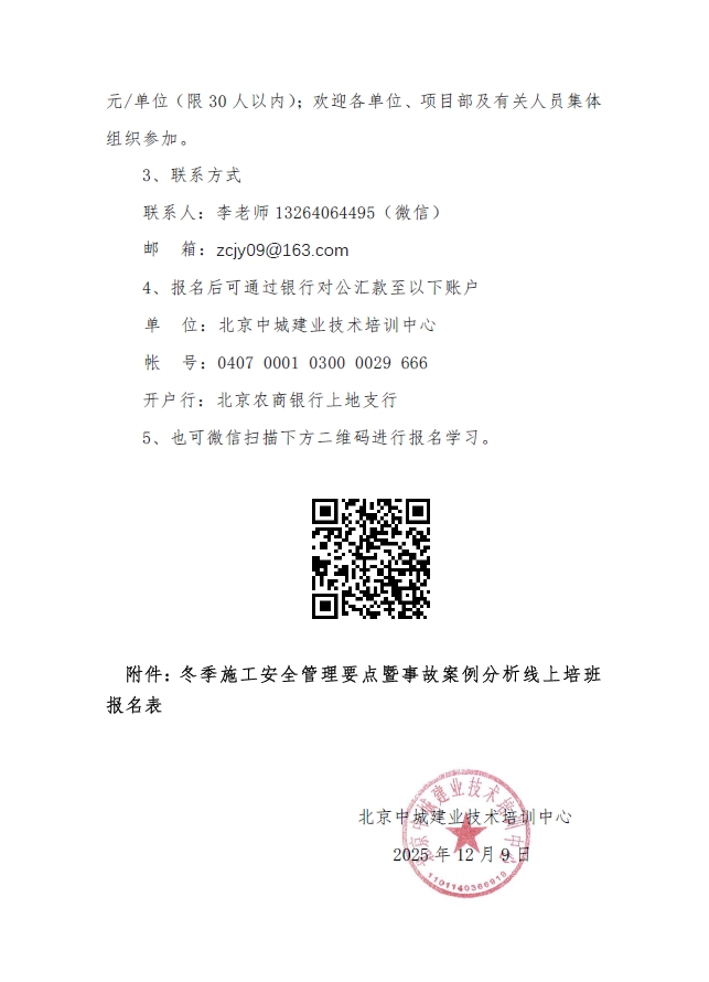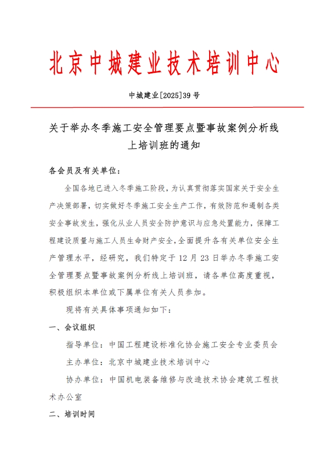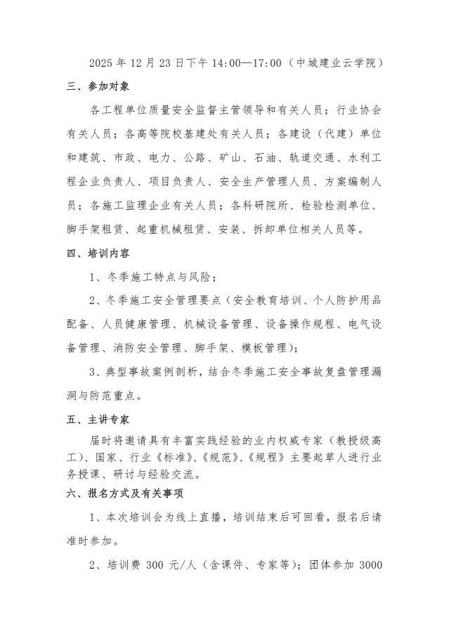 关于举办冬季施工安全管理要点暨事故案例分析线上培训班的通知